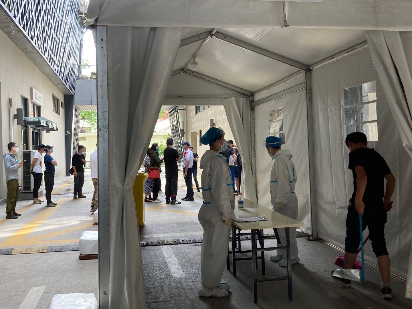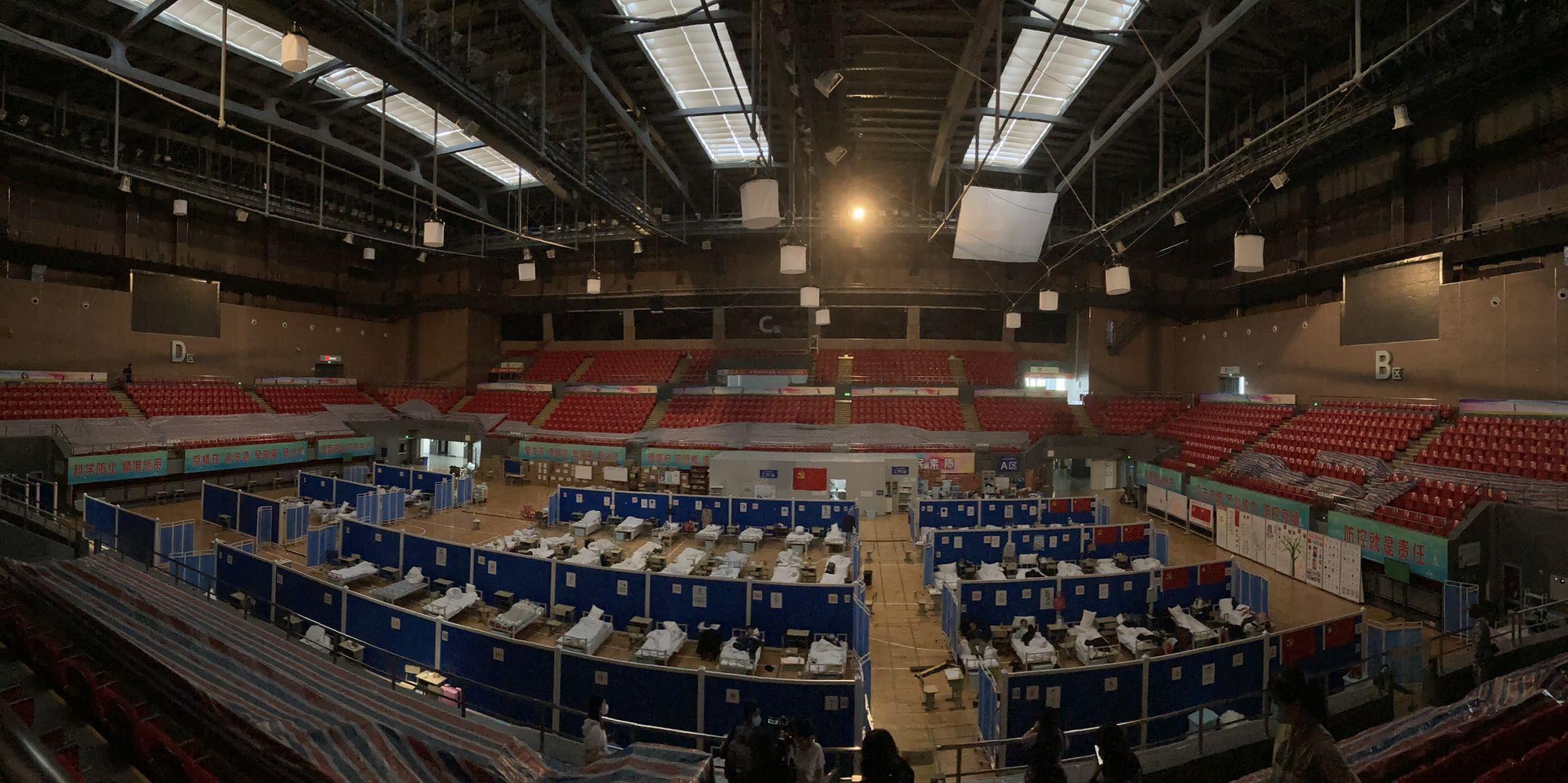 该剧另一位导演程源海介绍,剧组希望1:1还原武汉第一座方舱,于是在上海的多座体育馆勘景,后选定了嘉定体育中心。“基本上(跟武汉方舱)一模一样,不光是场馆的大小和形状,还有座椅的排列方式。的不同,这里的观众席座椅是红色,武汉的是蓝色。”选定后,剧组把原来羽毛球场的整块地胶撤掉,按照武汉方舱的样子铺床搭架子,24小时赶工,终于在5天内完成改造搭景。新京报记者探班时发现,“方舱”周围工作站还放有喇叭、彩笔和扇子等物件。汪俊表示,入住方舱的患者是轻症,气氛相对不那么沉重,剧中会更多地呈现方舱小社会的众生相,大家做操、下棋、跳舞、聊天,经历悲欢,甚至还发生了一段爱情。