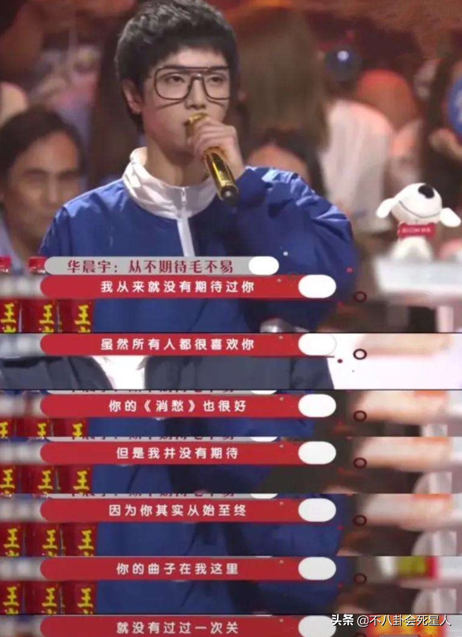 华晨宇在整个赛程中,一直在打击毛不易。华晨宇曾说:“我对你从来没有过期待,你的曲子在我这里一直就是不及格。”
