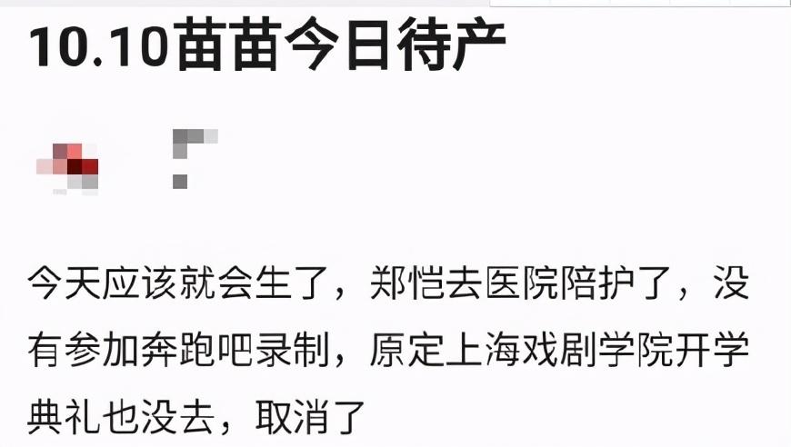 其实,早在10月10日,网上就有爆料,称苗苗生了,所以郑恺没有现身《奔跑吧》录制,也没有参加原定的上戏开学典礼活动。
