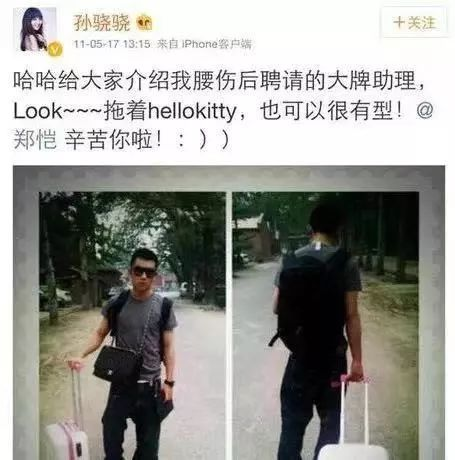 戏拍完了,两人又一起参加了《舞动奇迹》,互动也颇为暧昧。 2011年,孙骁骁微博晒出郑恺帮自己拿行李箱的照片,还称郑恺是自己的助理。