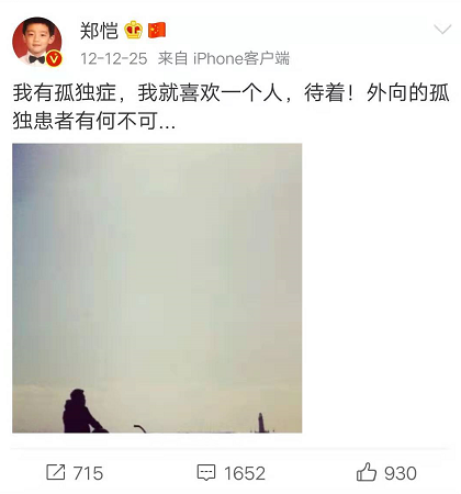 这段感情,郑恺处理得很低调,一直没有官宣过。