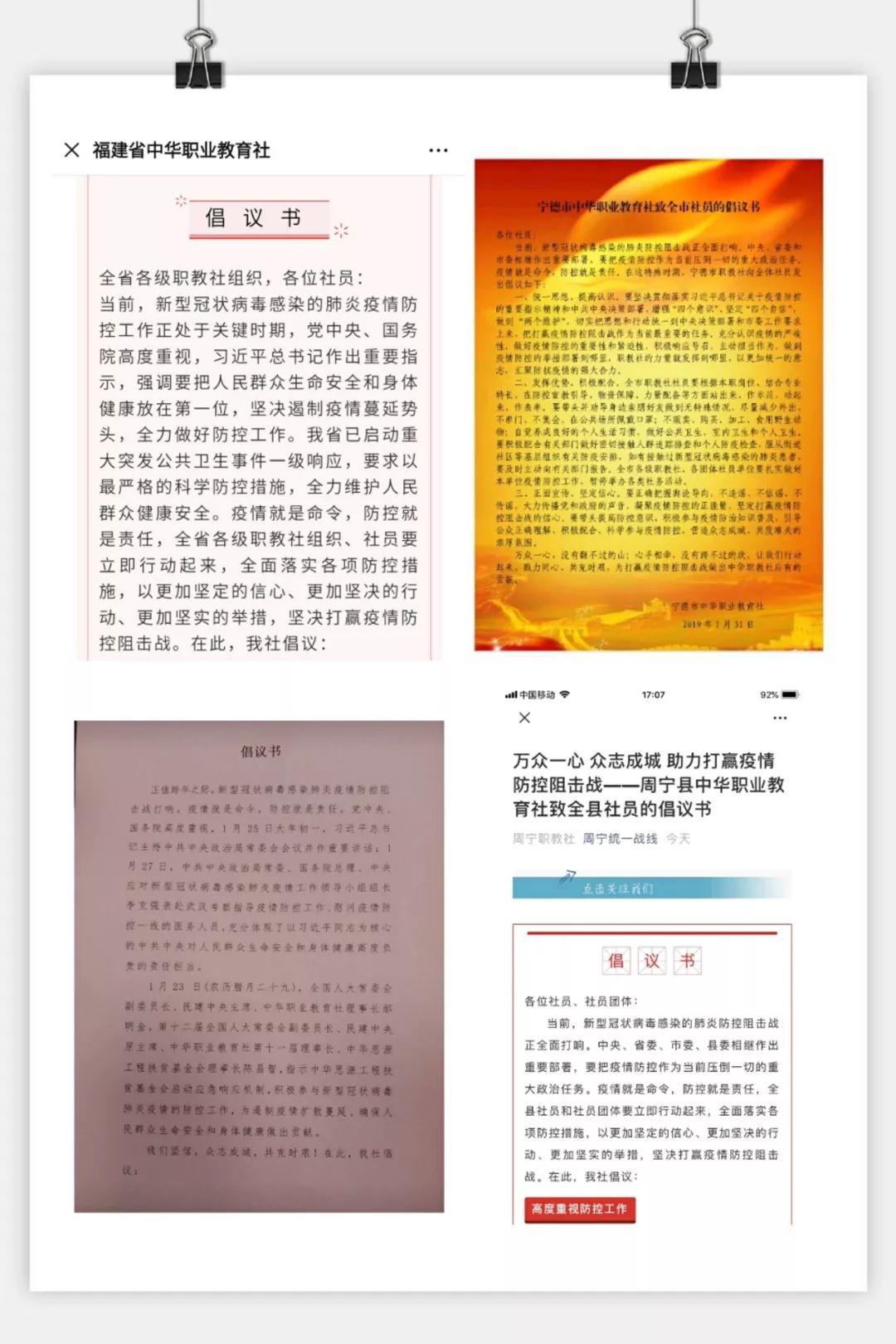 宁德市中华职教社向全体社员发出倡议,号召社员行动起来,戮力同心,共克时艰,为打赢疫情防控阻击战做出贡献。